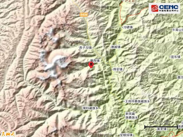 四川甘孜州瀘定縣發(fā)生6.8級地震 震中距成都市226公里