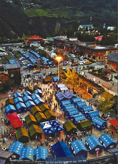 9月5日18時20分,天色漸暗,甘孜藏族自治州瀘定縣磨西鎮(zhèn)臨時安置點(diǎn)亮起了震后的第一盞燈。王明峰 湯衛(wèi) 攝影報道