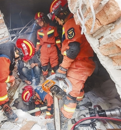 9月5日17時16分,海螺溝景區(qū)消防救援大隊對位于磨西鎮(zhèn)老街一酒店二樓的被困群眾展開營救。消防救援人員破拆加固建筑廢墟、安全評估現(xiàn)場環(huán)境,并對廢墟中的障礙物進(jìn)行清理,經(jīng)過緊張救援,被困群眾被成功救出。王明峰 劉國謙 攝影報道