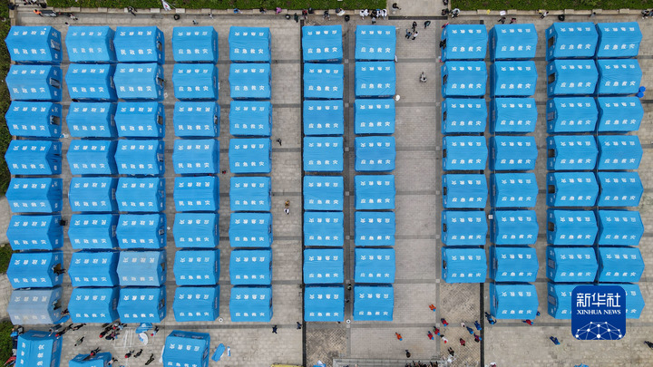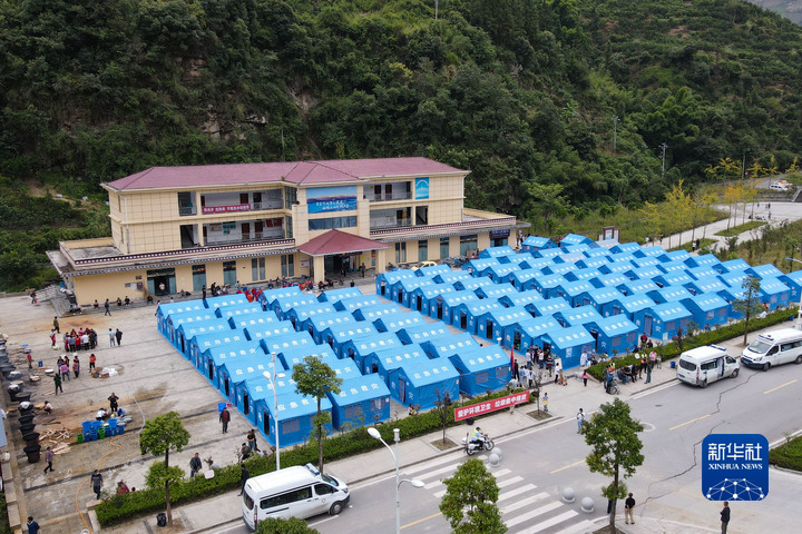 這是9月6日拍攝的位于石棉縣王崗坪鄉(xiāng)挖角村村委會的安置點(diǎn)(無人機(jī)照片)。新華社記者 胥冰潔 攝