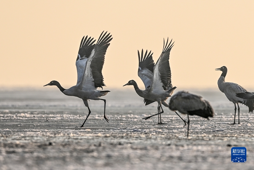 “只有人鳥共生,才能長遠發(fā)展”,已成為眾多黑頸鶴保護地的共同理念。在甘肅尕海,周邊禁止采砂、退出采礦、禁牧休牧,湖泊告別三度干涸歷史,水域面積不斷擴大,黑頸鶴回歸翱翔;在云南大包山,當?shù)貙嵤⒌厣鷳B(tài)修復項目,恢復濕地超過9000畝,為黑頸鶴預留更多棲息生態(tài)空間。