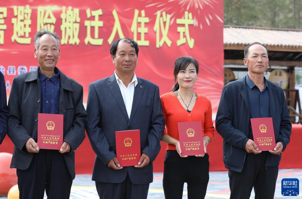 9月15日,在甘肅省武威市天祝藏族自治縣生態(tài)及地質(zhì)災(zāi)害避險(xiǎn)搬遷入住儀式上,祁連鎮(zhèn)116戶群眾拿到不動(dòng)產(chǎn)權(quán)證書(shū),入住新房。作為生態(tài)脆弱地區(qū),天??h通過(guò)生態(tài)及地質(zhì)災(zāi)害避險(xiǎn)搬遷工作,嘗試解決地質(zhì)災(zāi)害威脅和發(fā)展受限問(wèn)題。