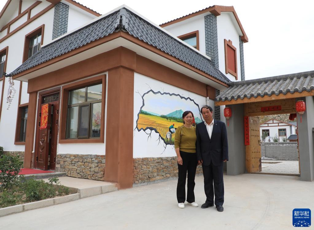 9月15日,在甘肅省武威市祁連鎮(zhèn)祁連村下河安置點(diǎn),村民鄧發(fā)斌和妻子在新房門(mén)前合影。新華社記者 張智敏 攝