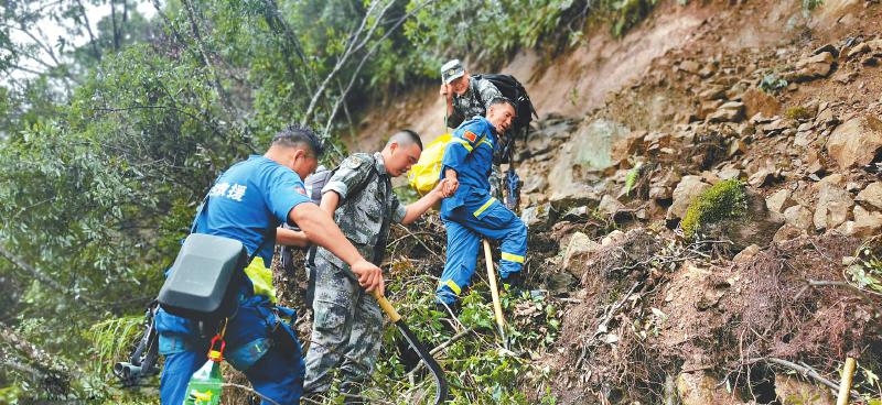 水上救援是這支隊伍的亮點。“我們到現(xiàn)場分析受災情況后,根據(jù)地形、地貌等條件,認為要快速救援受災群眾,水路救援更為快捷?!泵忌街ш牳敝ш犻L王東祥介紹,指揮部下達水上搜救的任務后,隊伍分成了水域搜救組、山地救援組和后勤保障支援組。其中,水域搜救組,去時運送消防救援人員和武警四川總隊等官兵前往受災村落,回時轉運受災受傷群眾?!熬仍^程時常很驚險,比如塌方落石,比如大渡河水流湍急,對體力的要求很高?!标爢T們歸隊后用餐時筷子都不聽使喚了。幾天下來,僅水域救援隊就運送消防、武警、陸軍搜救隊員超過200人,轉運受災受傷群眾超過200人。