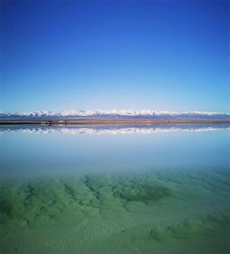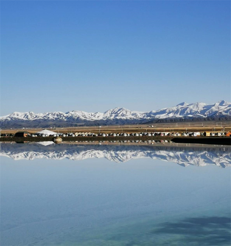 位于青海省海西蒙古族藏族自治州烏蘭縣的茶卡鹽湖鹽層開始結(jié)晶,湖水逐漸純凈,平靜的湖水如同天然鏡面,倒映著湛藍天空與皚皚雪山,呈現(xiàn)出一幅別樣高原秋日美景。