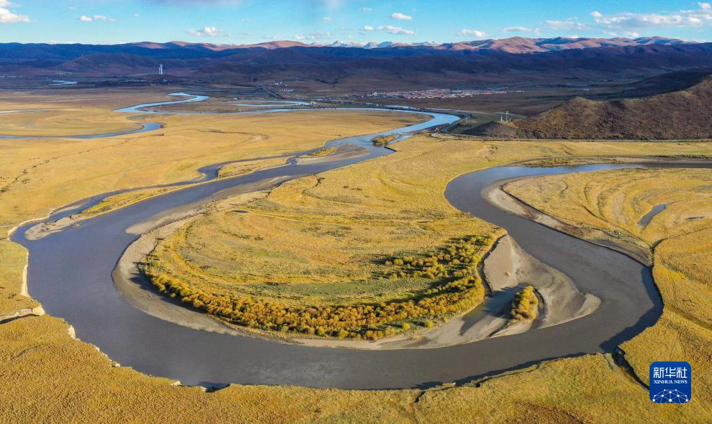 這是10月19日在四川省阿壩藏族羌族自治州若爾蓋縣拍攝的熱曲河(無人機(jī)照片)。新華社記者 王曦 攝