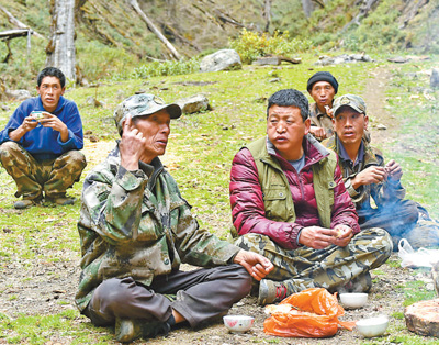 以前,從小在山林間長大的父親也很少看到猴子的蹤影,只能撿些糞便了解猴群的健康狀況。后來,余忠華跟著父親親眼見到了可愛的滇金絲猴,在父親的影響下,他也加入了護林員的隊伍,至今已18年。