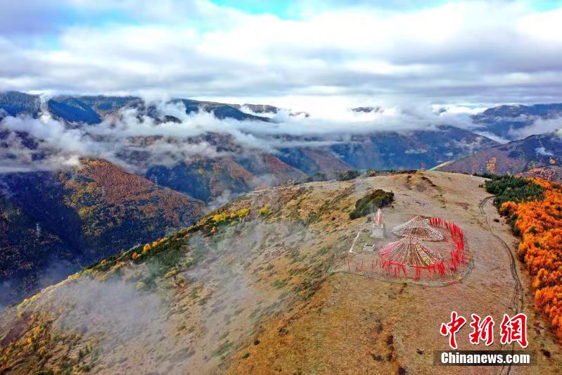 深秋時(shí)節(jié),四川馬爾康市馬爾康鎮(zhèn)阿底村賽馬山迎來彩林觀賞的最佳季節(jié)。放眼望去,海拔3500米的賽馬山上彩林連綿延伸至茫茫云海,遠(yuǎn)方雪山四面環(huán)繞,宛如仙境一般。阿壩州文體旅游局供圖