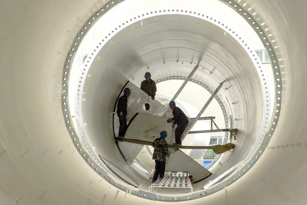 圖為工人在加工新生產的風電塔筒。(受訪者供圖)