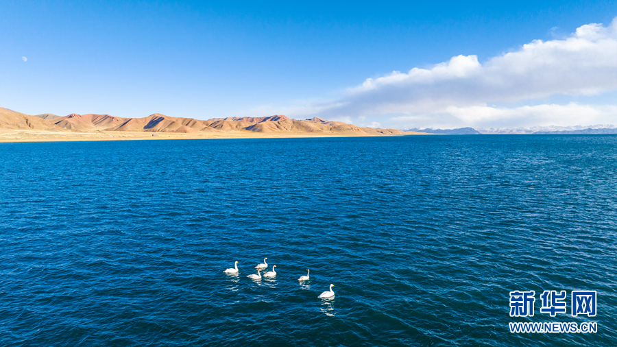 湖泊與遠處的山峰交相輝映,景色壯觀。新華網(wǎng) 李友崇 攝