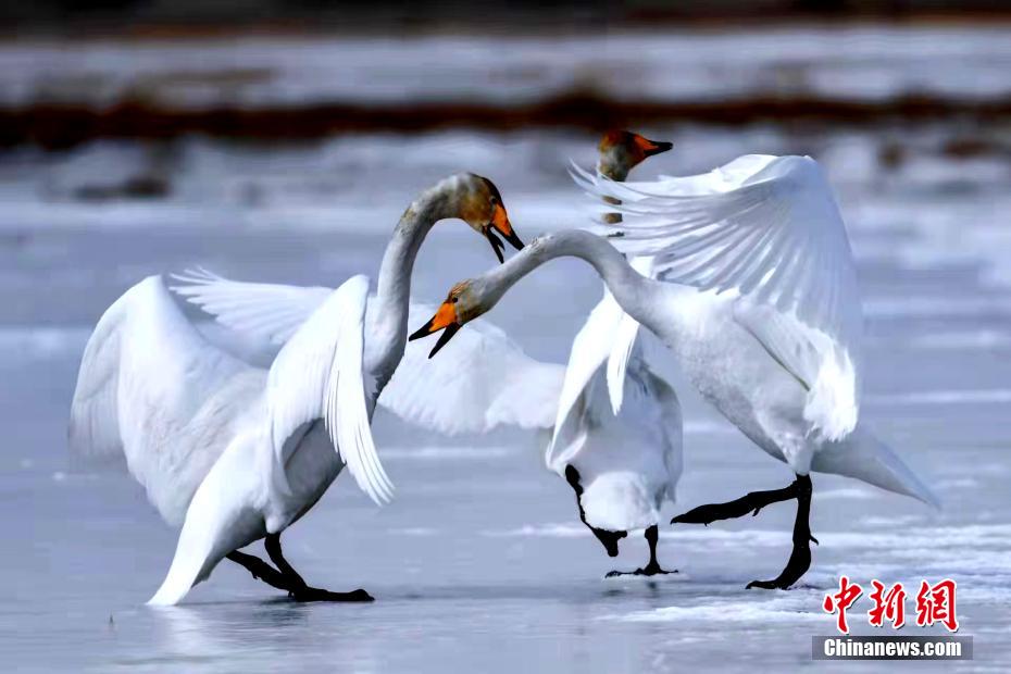 圖為黃河岸畔貴德縣迎來天鵝“做客”?!◇泱憔?攝