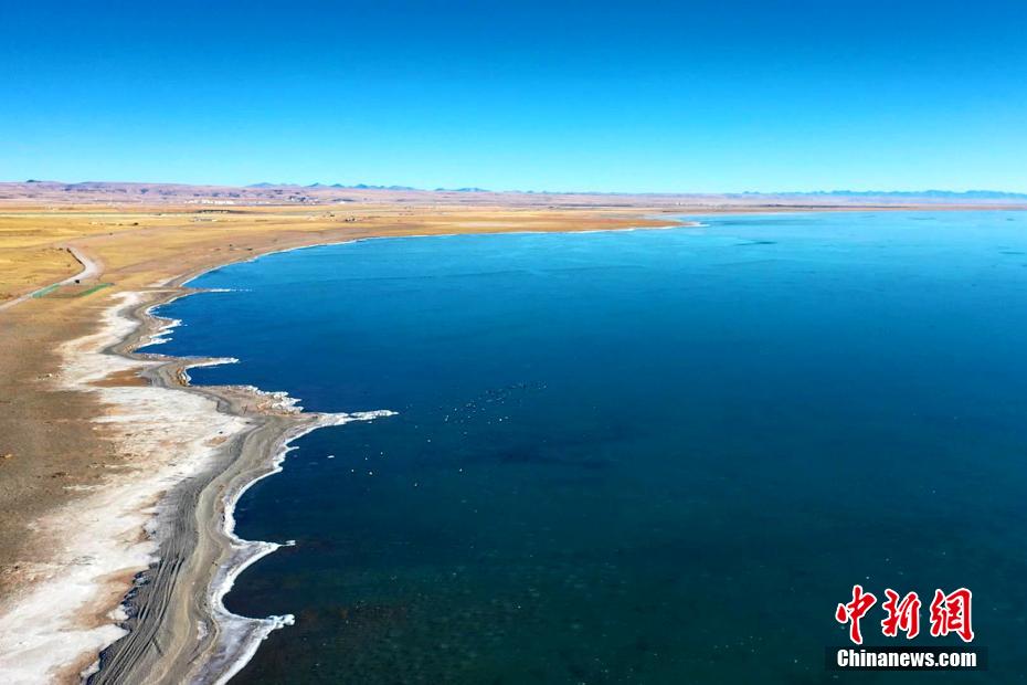 青海湖湖面封凍如破碎“玉帶”