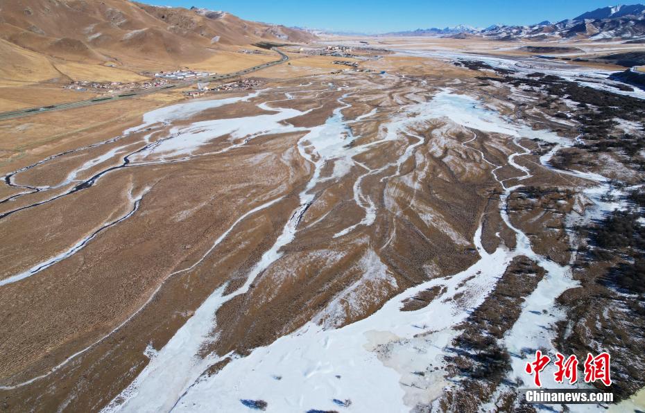 航拍雪后青海黃河岸畔藏族村落:阡陌交通,宛如仙境