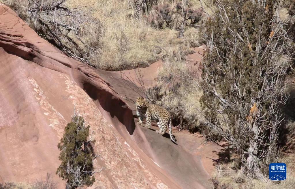在三江源國家公園內(nèi)拍攝到的金錢豹。新華社發(fā)