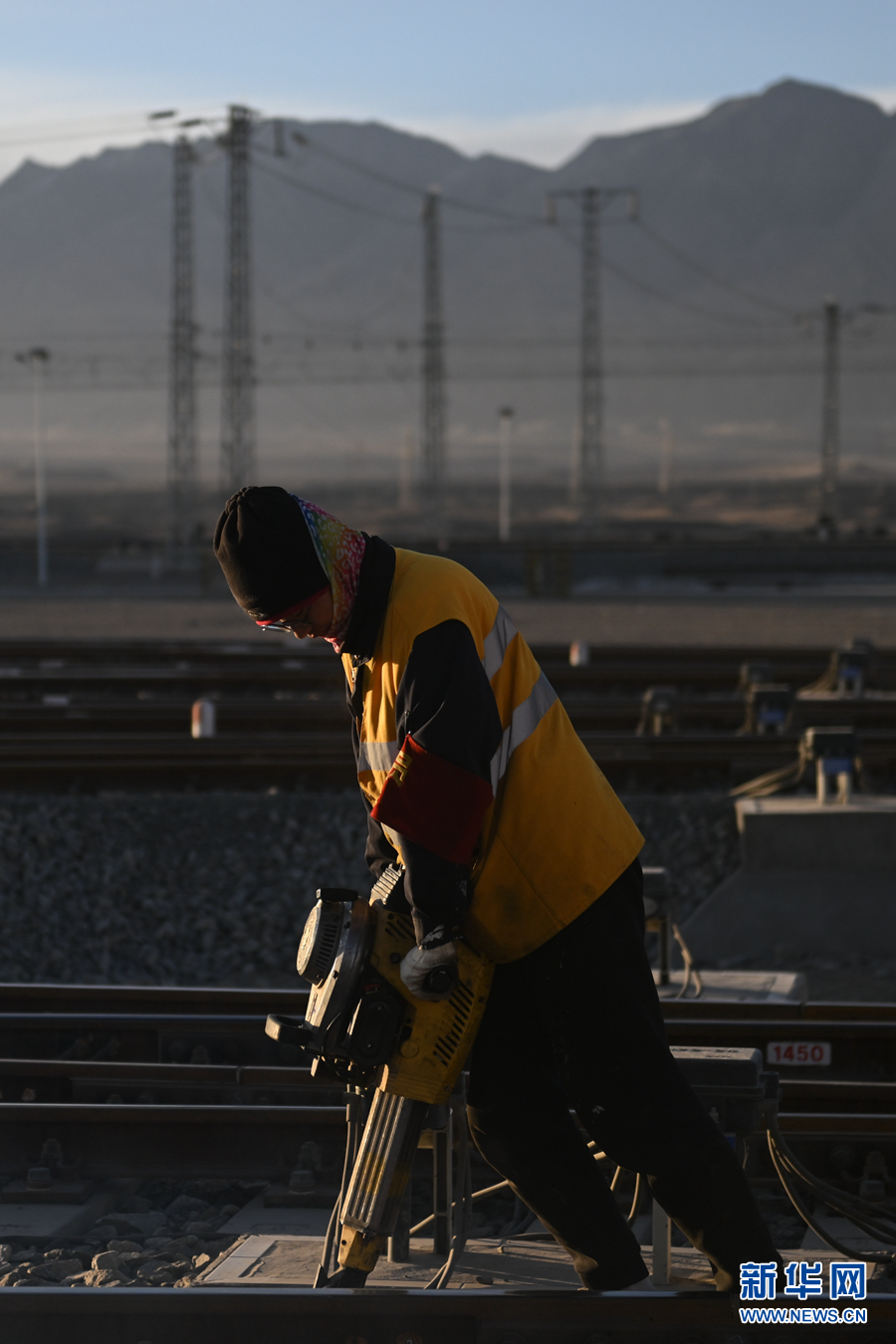春運期間,中國鐵路青藏集團有限公司格爾木工務段格南線路工區(qū)的職工始終在崗在位,擔負格庫鐵路最大編組站的養(yǎng)護維修,確保格庫鐵路物資運輸暢通。