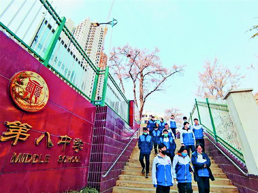 蘭州市第八中學(xué)的學(xué)生走出校園