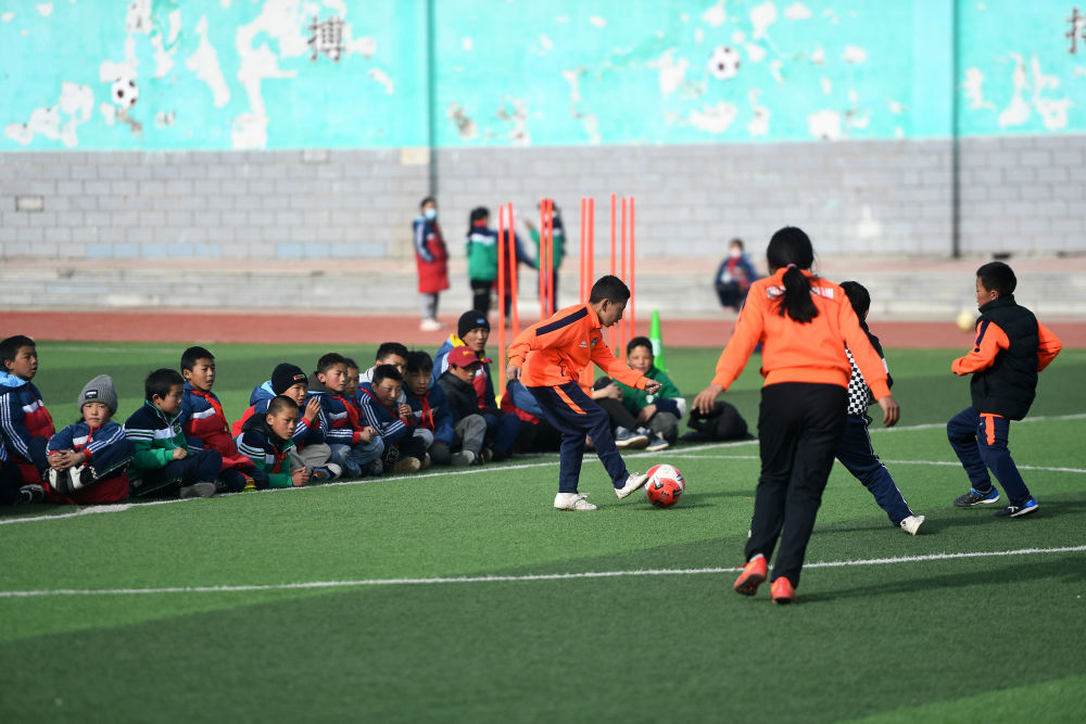 3月1日,在玉樹州治多縣,吉尕小學(xué)學(xué)生在足球訓(xùn)練課上。新華社記者 張宏祥 攝