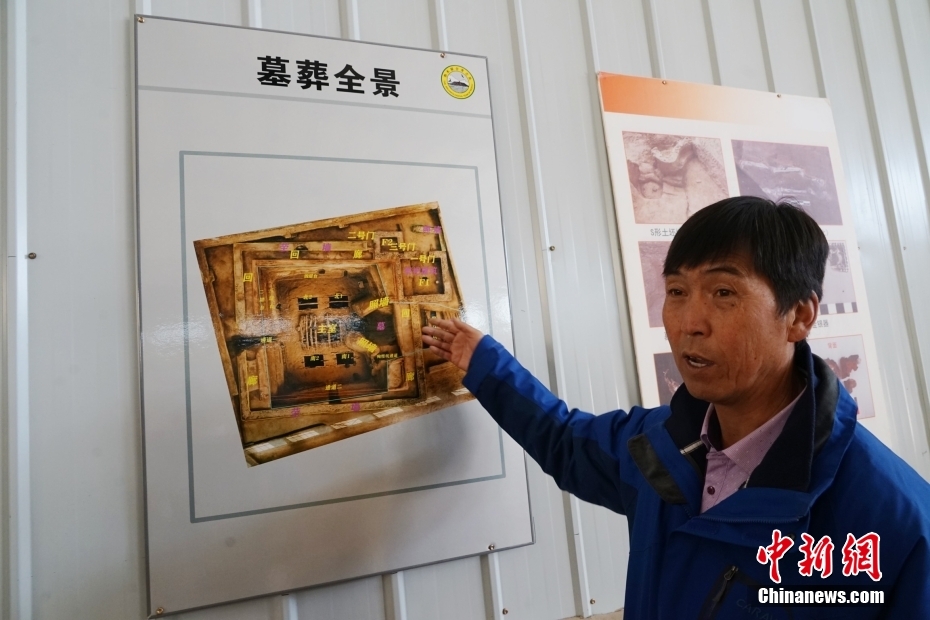 3月18日,青海省海西州都蘭縣博物館館長張杲光介紹熱水墓群2018血渭一號(hào)墓。中新社記者 馬銘言 攝