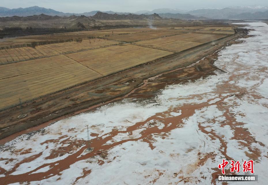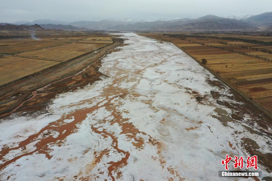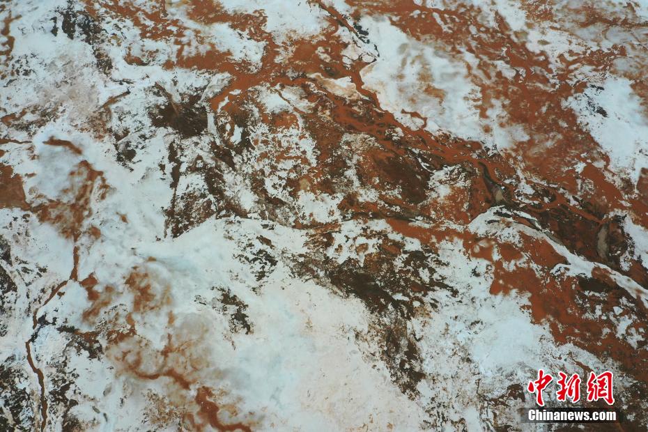 3月19月,航拍青海省海西蒙古族藏族自治州都蘭縣香日德河。香日德河是柴達(dá)木盆地的第三條大河,因河底的石頭由紅色片麻巖組成,加之上游地區(qū)下雨沖刷紅色土壤而形成棕紅色河流的自然景觀,故稱“紅河谷”。河流夾帶礦物質(zhì),長(zhǎng)年累月積累形成了干涸淺紅色的河床。初春三月,乍暖還寒,紅色的河流與白色的冰面相互交錯(cuò),絢麗壯美。