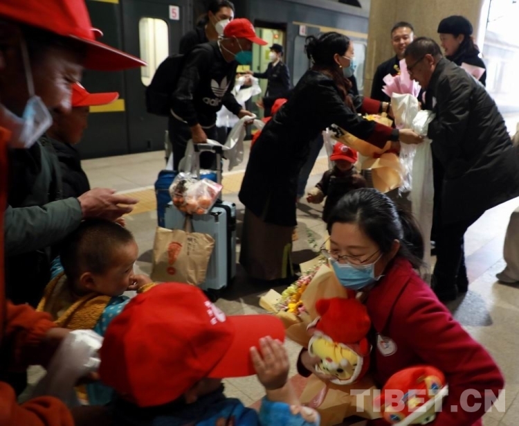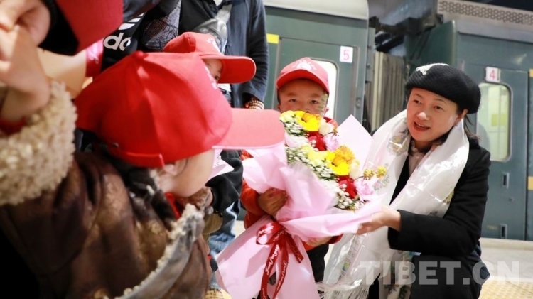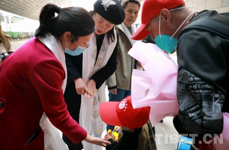 來自中國醫(yī)學(xué)科學(xué)院整形外科醫(yī)院的醫(yī)務(wù)志愿者、中央統(tǒng)戰(zhàn)部有關(guān)領(lǐng)導(dǎo),以及北京同心共鑄公益基金會的志愿者們,早早地準(zhǔn)備好了鮮花和玩具,在站臺上迎接孩子們的到來。