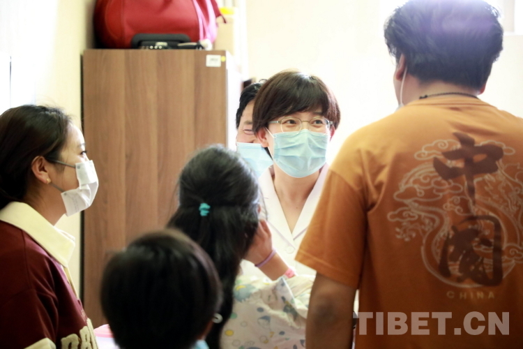 圖為北醫(yī)三院心臟外科主任醫(yī)師、副主任張喆教授手術(shù)前到病房與來自青海省果洛藏族自治州的先心病患兒溝通 攝影:劉莉