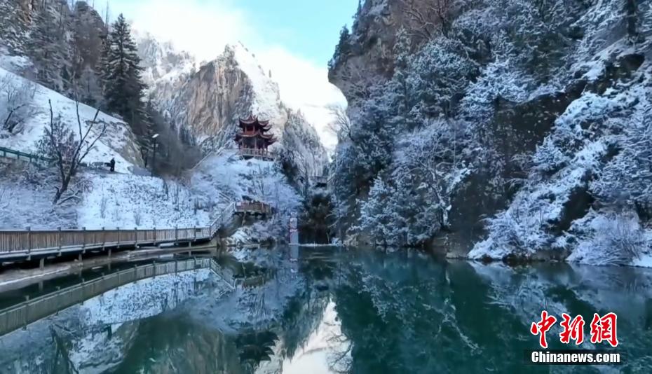 航拍甘南大峪溝雪景,銀裝素裹美如畫。