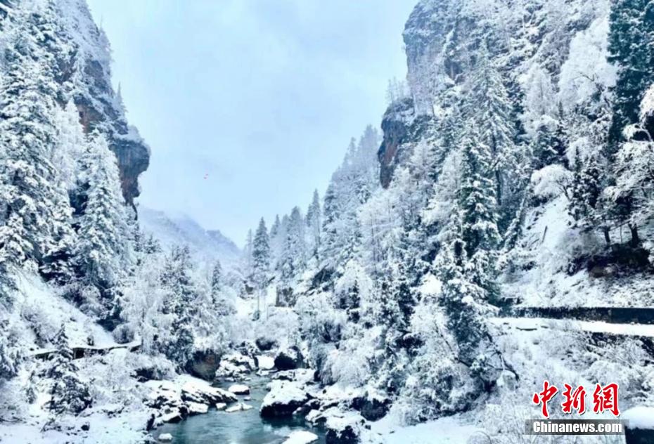 3月底,甘肅甘南藏族自治州卓尼縣大峪溝被一場春雪覆蓋,紛紛揚揚的雪花勾勒出一幅意境深遠的水墨丹青畫。大峪溝與九寨溝齊名,有“南有九寨溝、北有大峪溝”之美譽。圖為春雪增春色,大峪溝玉樹瓊枝的場景。
