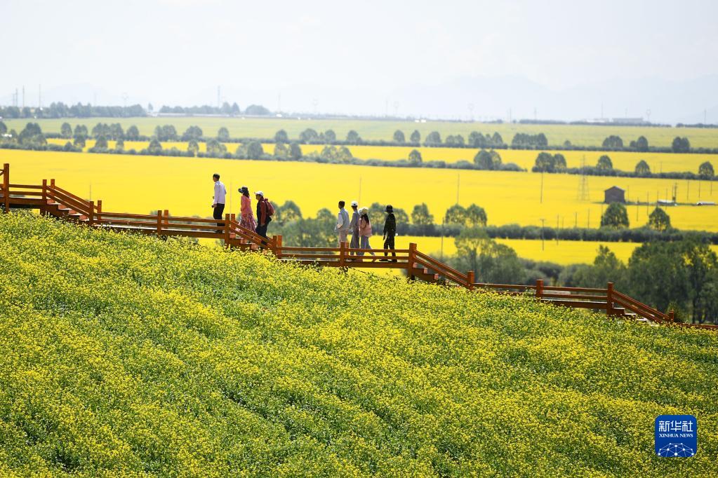 海北藏族自治州剛察縣油菜花海。新華社記者 李琳海 攝