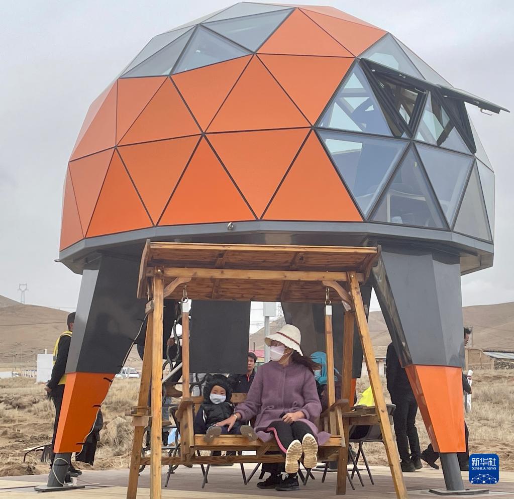 27日,游客在活動現(xiàn)場體驗(yàn)星空房和戶外秋千。 新華社記者 周盛盛 攝