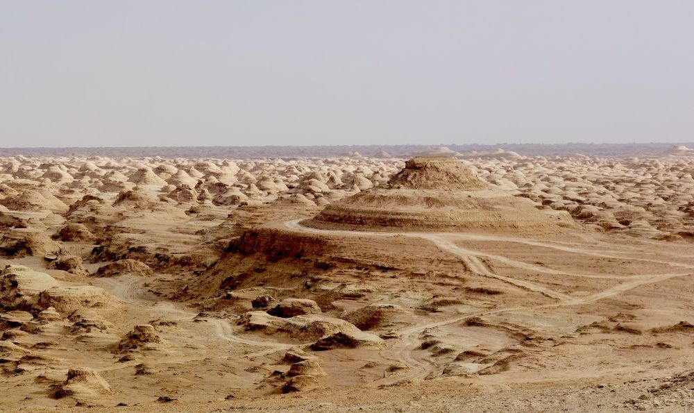 這是4月8日在“火星一號”公路旁拍攝的雅丹群。新華社記者 顧玲 攝