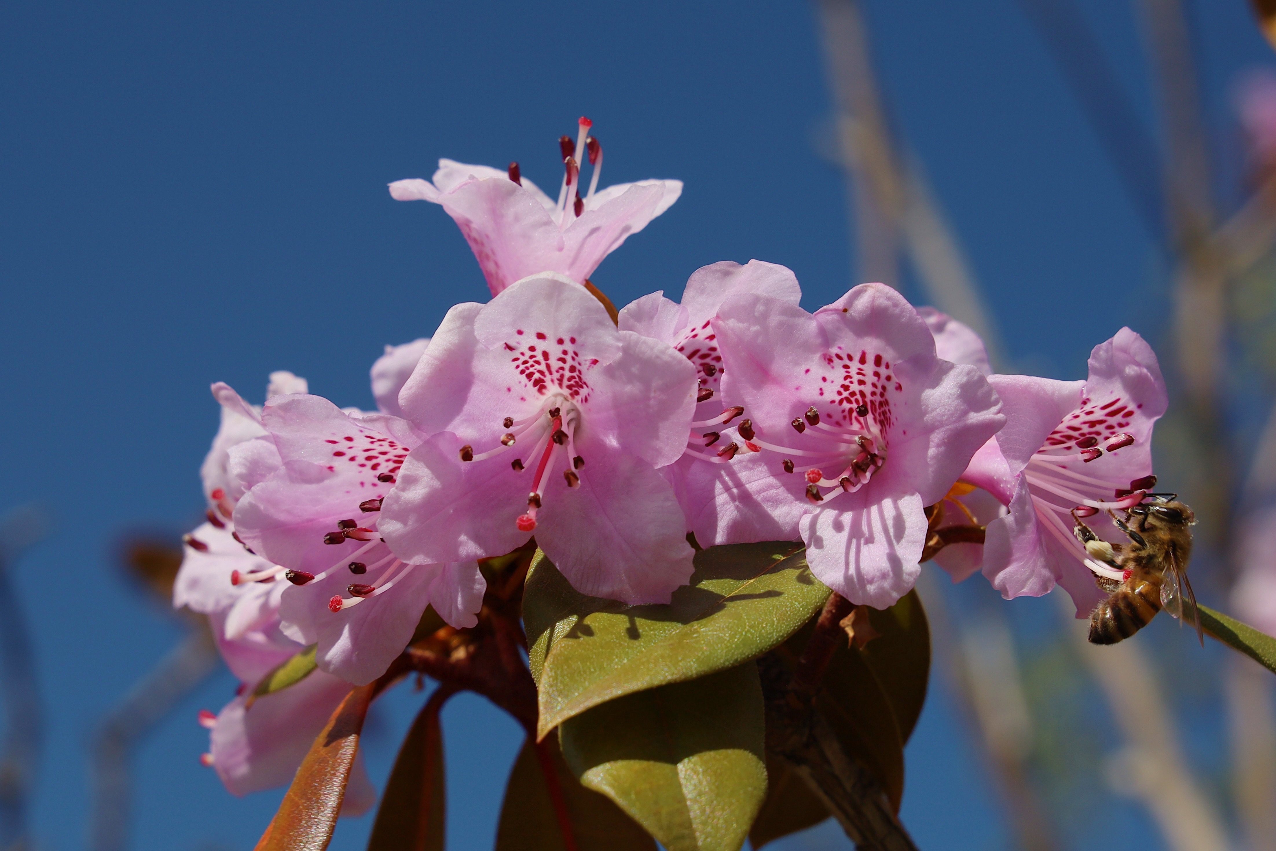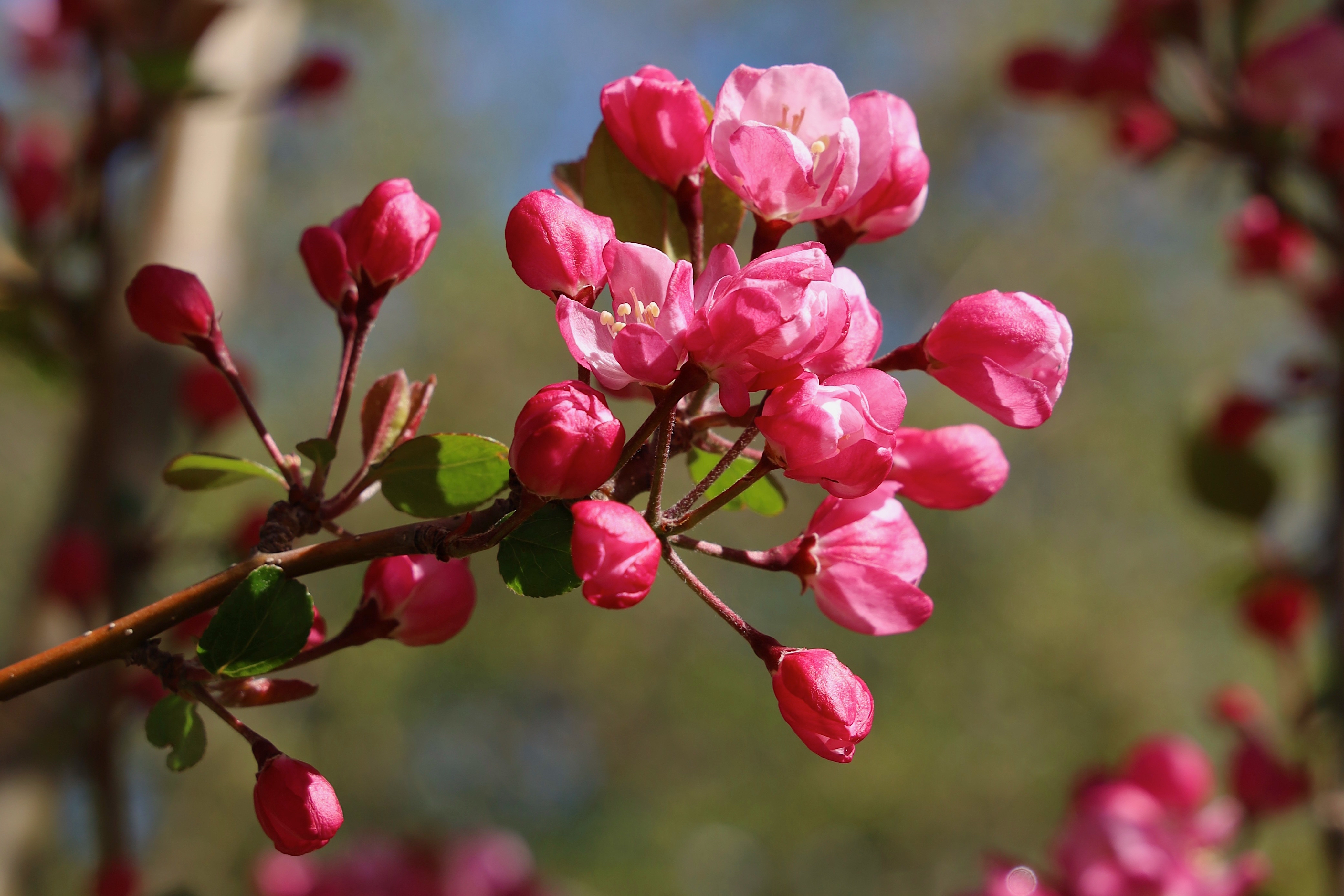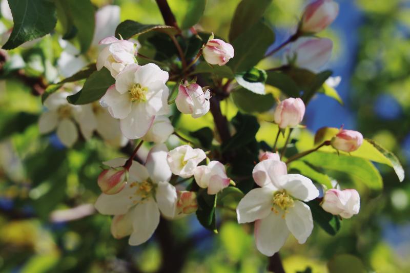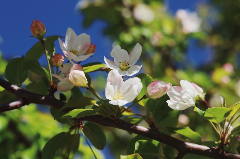 5月,香巴拉公園內(nèi)各色花卉競(jìng)相開(kāi)放,天藍(lán)更襯花紅,杜鵑花、海棠花、櫻桃李花在光影下變幻著不同的美。微風(fēng)輕拂,花色明亮,季節(jié)的故事在這一片片花色中演繹開(kāi)來(lái)。