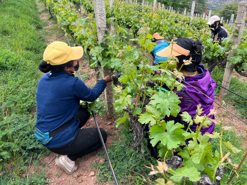 為不斷拓寬農(nóng)戶增收路子,公司與當(dāng)?shù)馗裆C范淦咸逊N植專業(yè)合作社合作,采取“租賃+務(wù)工”模式,按租賃每畝土地30個(gè)工,每個(gè)工120元的方式,為當(dāng)?shù)卮迕裉峁┬藜?、采摘、釀酒等各類就業(yè)崗位。在此基礎(chǔ)上,村黨總支積極聯(lián)系香格里拉酒業(yè)股份有限公司,通過訂單收購方式,在阿東村下片四個(gè)村民小組收購赤霞珠,霞多麗,西拉等品種,從2012年至今每年以3.6元每公斤收購,戶均收入達(dá)12910元。