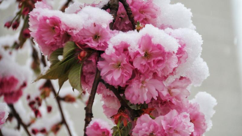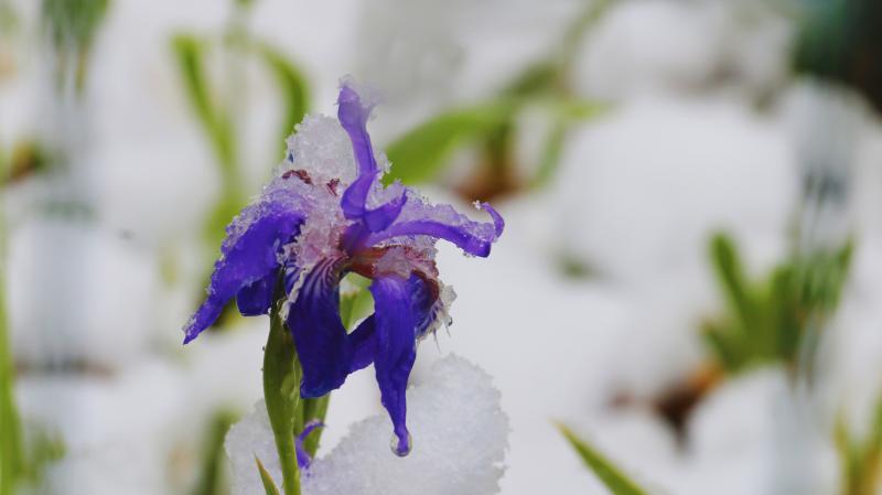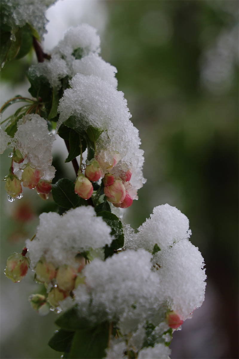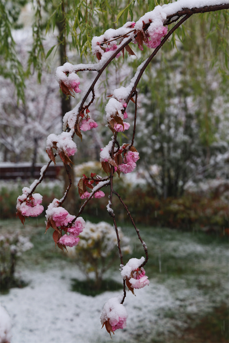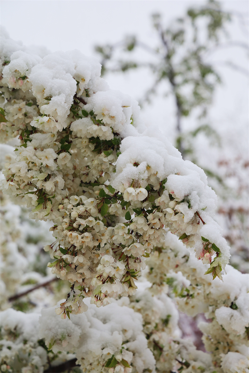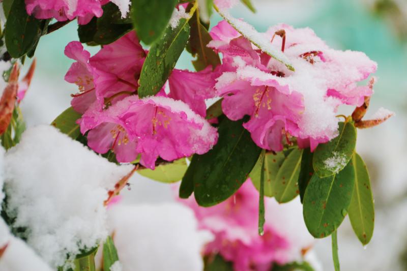 立夏節(jié)氣過后,香格里拉又迎來了一場(chǎng)大雪。櫻花、杜鵑花、鳶尾花在雪中競(jìng)相綻放,美如童話世界。