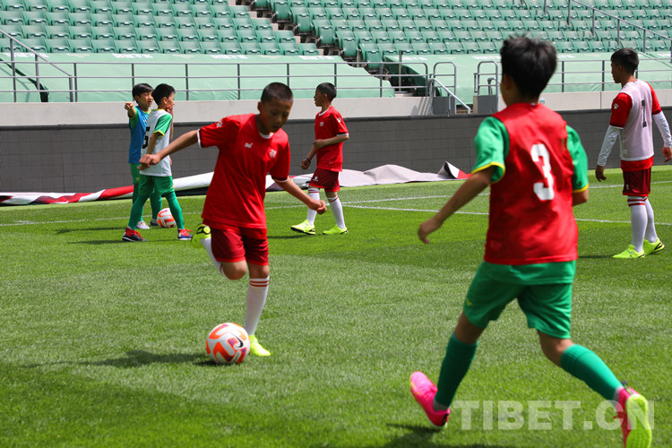 同樣在這片場館,6月1日,他們和北京國安的30名小球員進行過一場交流賽。來自雪域風一般的少年們完全忽略了北京炎熱的天氣,在場上放飛奔跑,追逐拼搶。