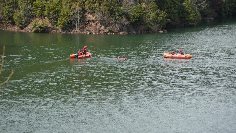本次演練包括繩索救援、水域救援、高空救援橫渡三個專項,演練現(xiàn)場緊張有序。