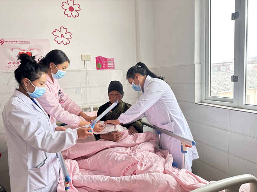 “母乳喂養(yǎng)要保持正確姿勢,防止嬰兒嗆奶?!痹挟a保健醫(yī)生格絨拉姆在巡房時,給產婦們普及正確的育兒知識并告知產后康復的重要性。