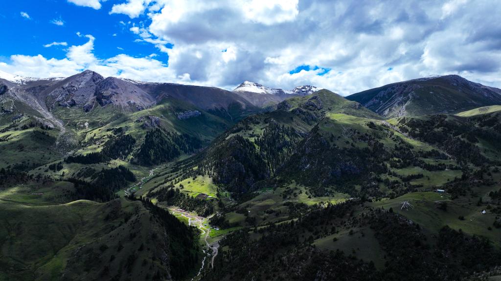 這是6月18日在青海省玉樹藏族自治州囊謙縣境內(nèi)拍攝的三江源地區(qū)風(fēng)光。 新華社記者 柳澤興 攝