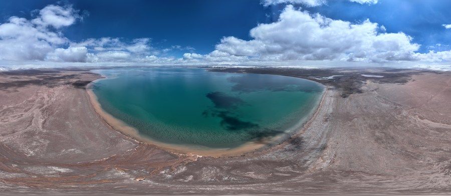 這是6月17日拍攝的可可西里卓乃湖(無人機全景照片)。新華社記者 張宏祥 攝
