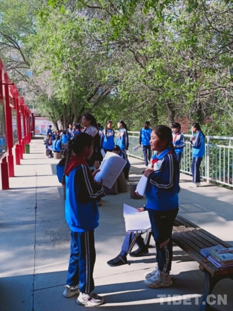圖為學(xué)生們?cè)谛@內(nèi)朗讀