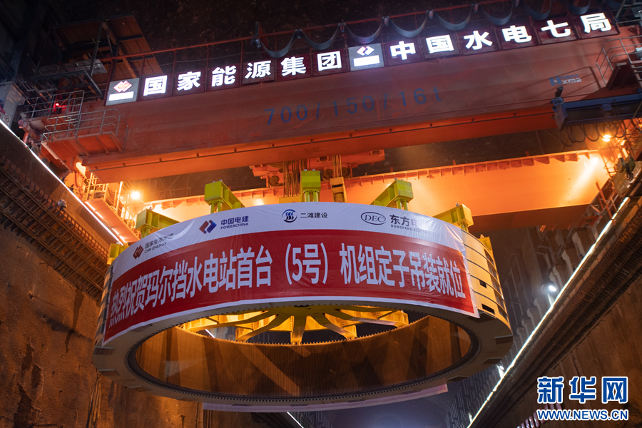 瑪爾擋水電站首臺機組定子吊裝成功