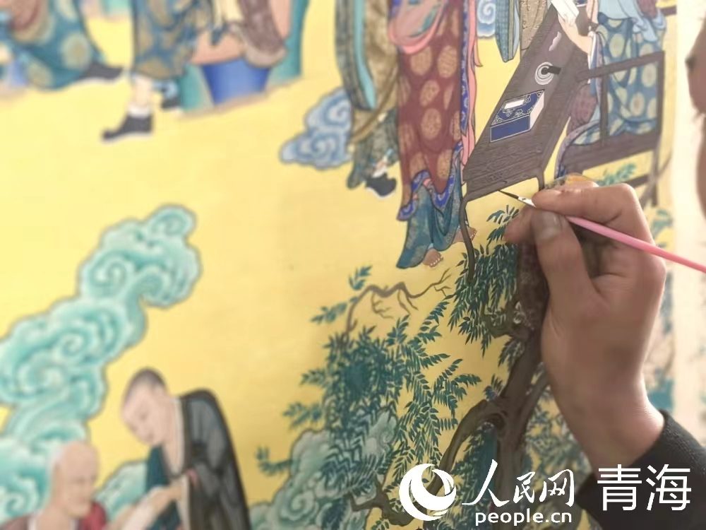 學徒細致描繪唐卡。人民網(wǎng) 馬可欣 攝