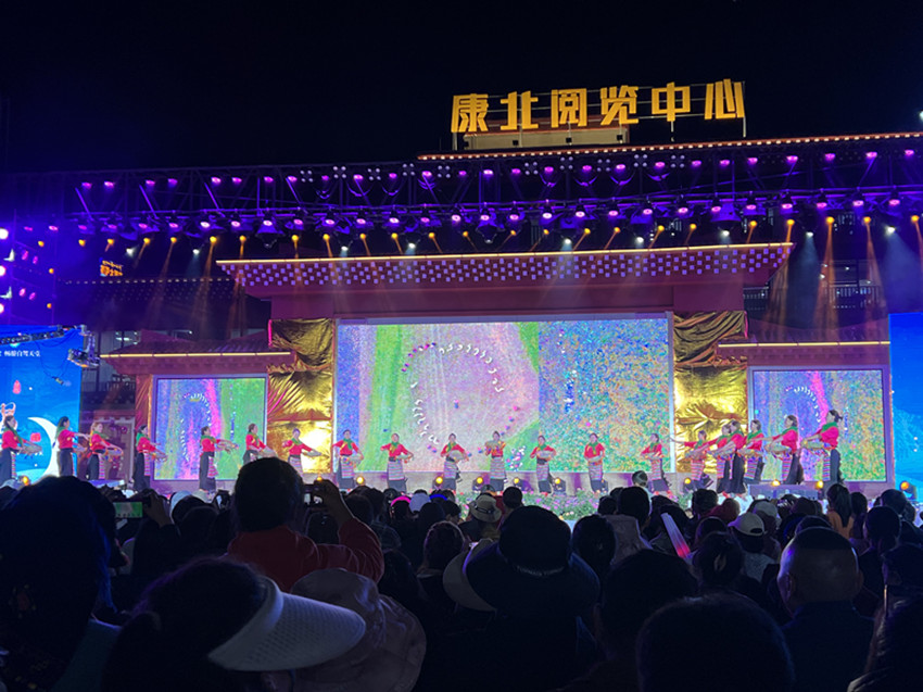 隨后,《高原的春天》《草原情歌》《甘孜布姆》《圣康田園》等節(jié)目相繼上演。在絢麗的舞臺效果襯托下,在歡樂的氣氛烘托中,偌大的廣場上座無虛席,臺上臺下沉浸在一片歡樂的海洋中,大家紛紛報以熱烈掌聲和陣陣喝彩。