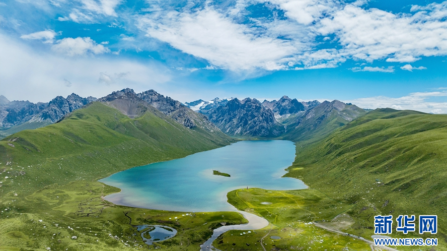 圖為在青海省果洛藏族自治州甘德縣境內(nèi)拍攝的夏日風(fēng)光(無(wú)人機(jī)照片)。新華網(wǎng) 宋忠勇 攝