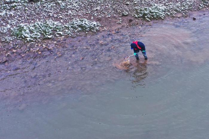 由水利部長江水利委員會長江科學院牽頭組織的2023年江源綜合科學考察正在長江源進行,其中魚耳石是新增研究內容。為了采集耳石,來自長江科學院水環(huán)境所的科考隊員劉晗頂著大風和雨雪,穿著下水褲和隊友在長江源區(qū)多條河流中采集魚類樣本,經常在冰冷的河水中守候十多分鐘。