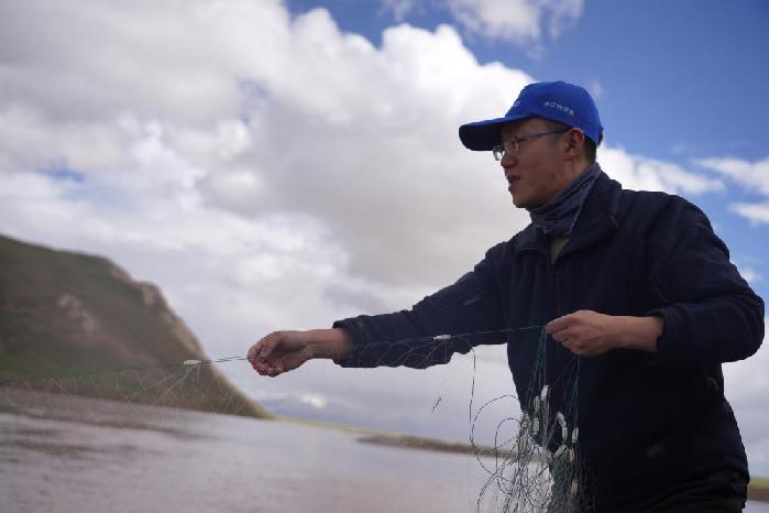 7月26日,劉晗在長江源區(qū)河流采集魚類樣本。新華社記者 陳杰 攝
