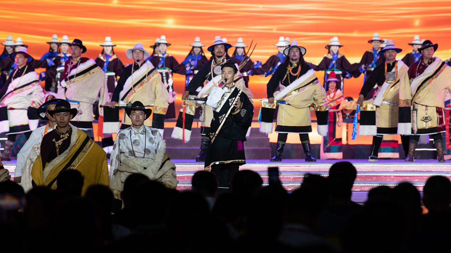 7月31日,慶祝青海省海南藏族自治州成立70周年藏族服飾藝術(shù)嘉年華迎賓晚會(huì)現(xiàn)場。