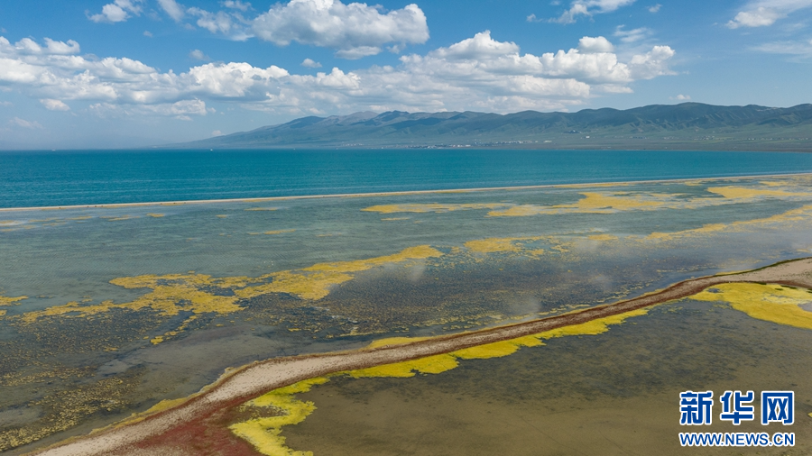 這是8月2日拍攝的青海湖。(無人機(jī)全景照片)新華網(wǎng) 郭勇良 攝