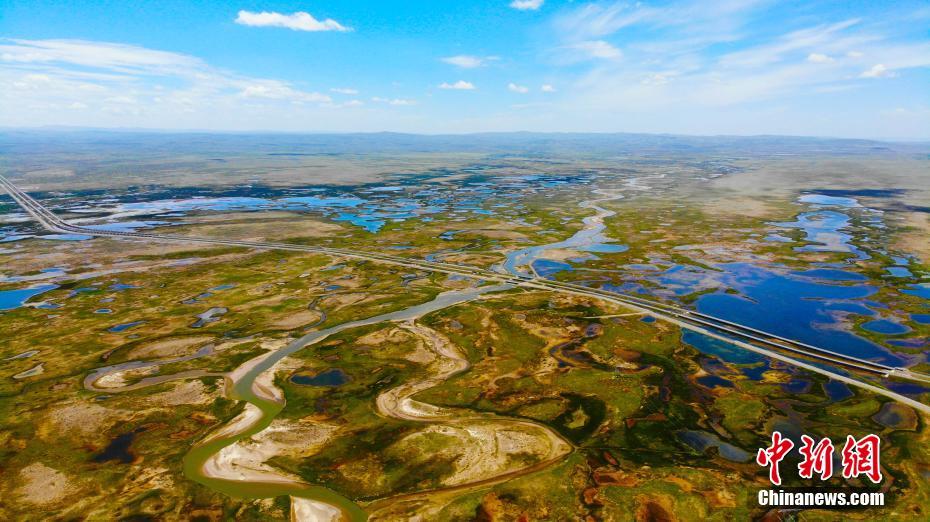航拍黃河源頭星星海 色彩斑斕似調(diào)色板