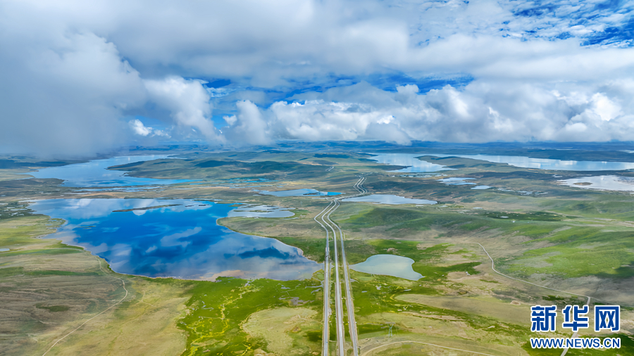 在青海省果洛藏族自治州瑪多縣境內(nèi)拍攝的星星海(無人機照片)。新華網(wǎng) 宋忠勇 攝