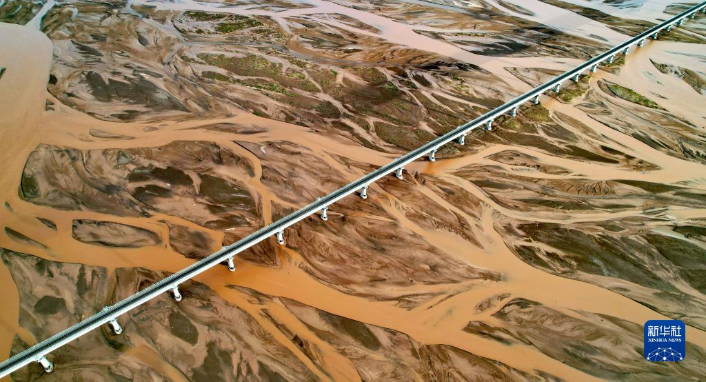 青藏鐵路跨過沱沱河辮狀河道(7月26日攝,無人機(jī)照片)。新華社記者 劉詩平 攝